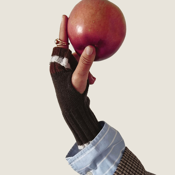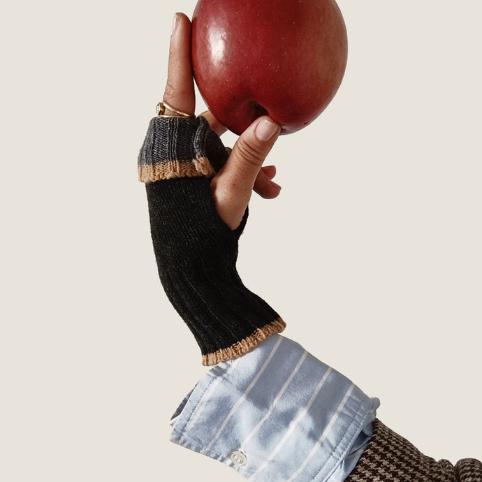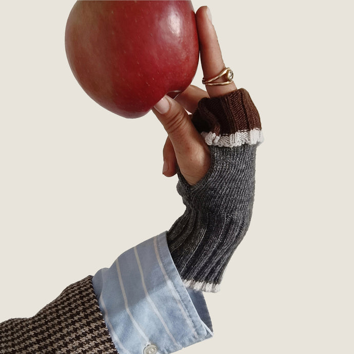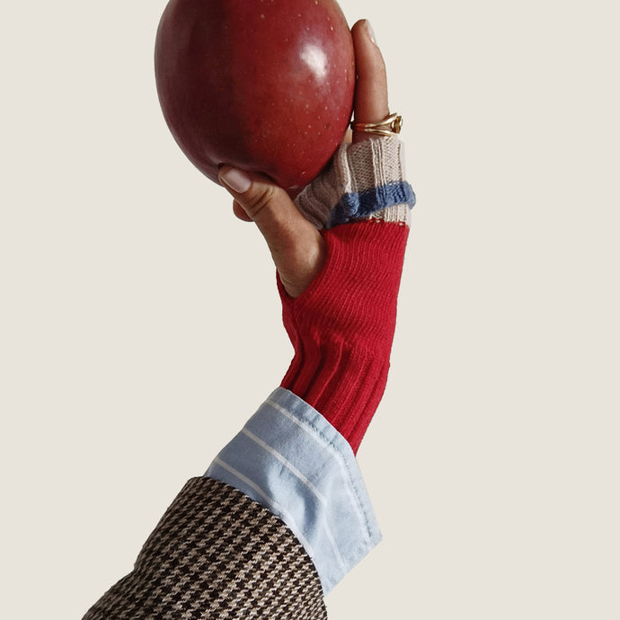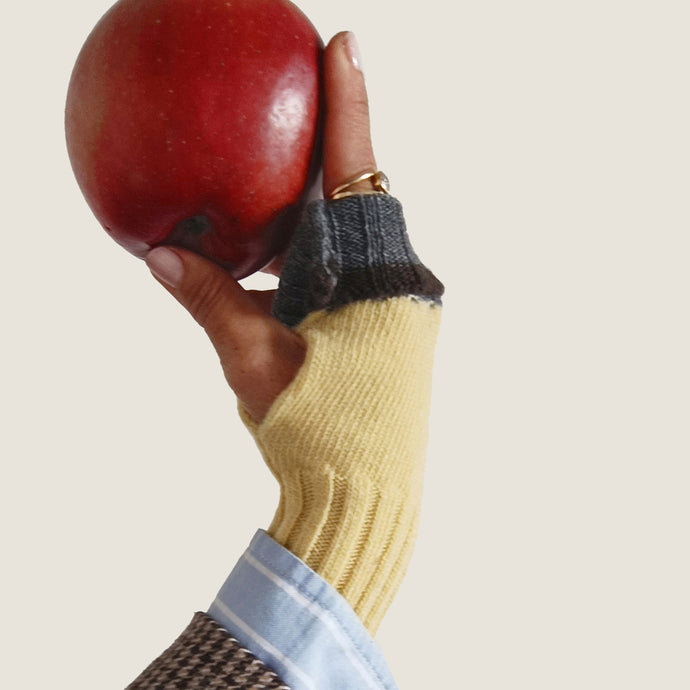I manicotti UN/PAIR sono dei guantini senza dita, con un'asola laterale per il pollice. In misto lana e cashmere, sono ambidestri e possono essere portati da entrambi i lati e colori.