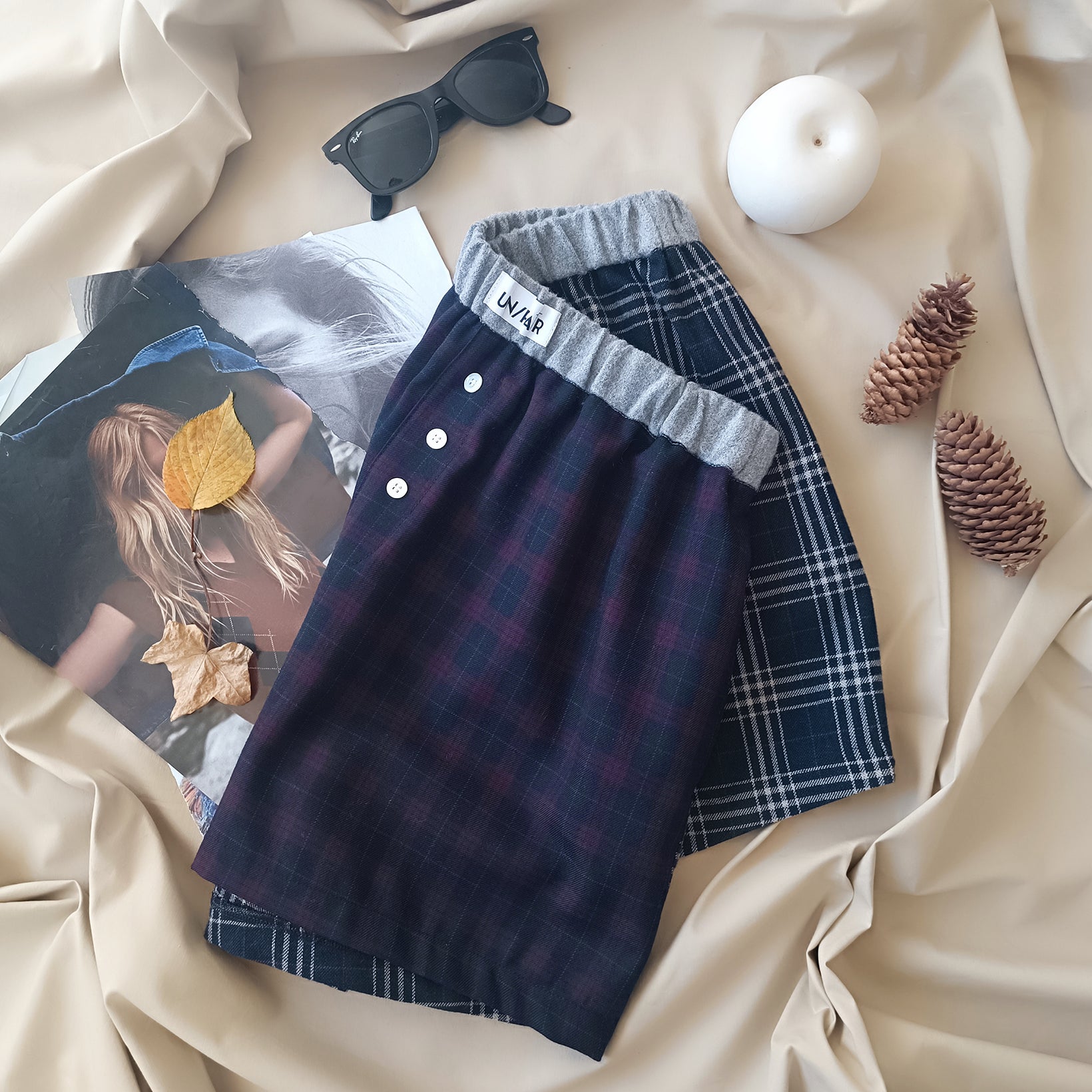 • Load image into Gallery viewer, Bordeaux checkered boxerina short with blue tartan back