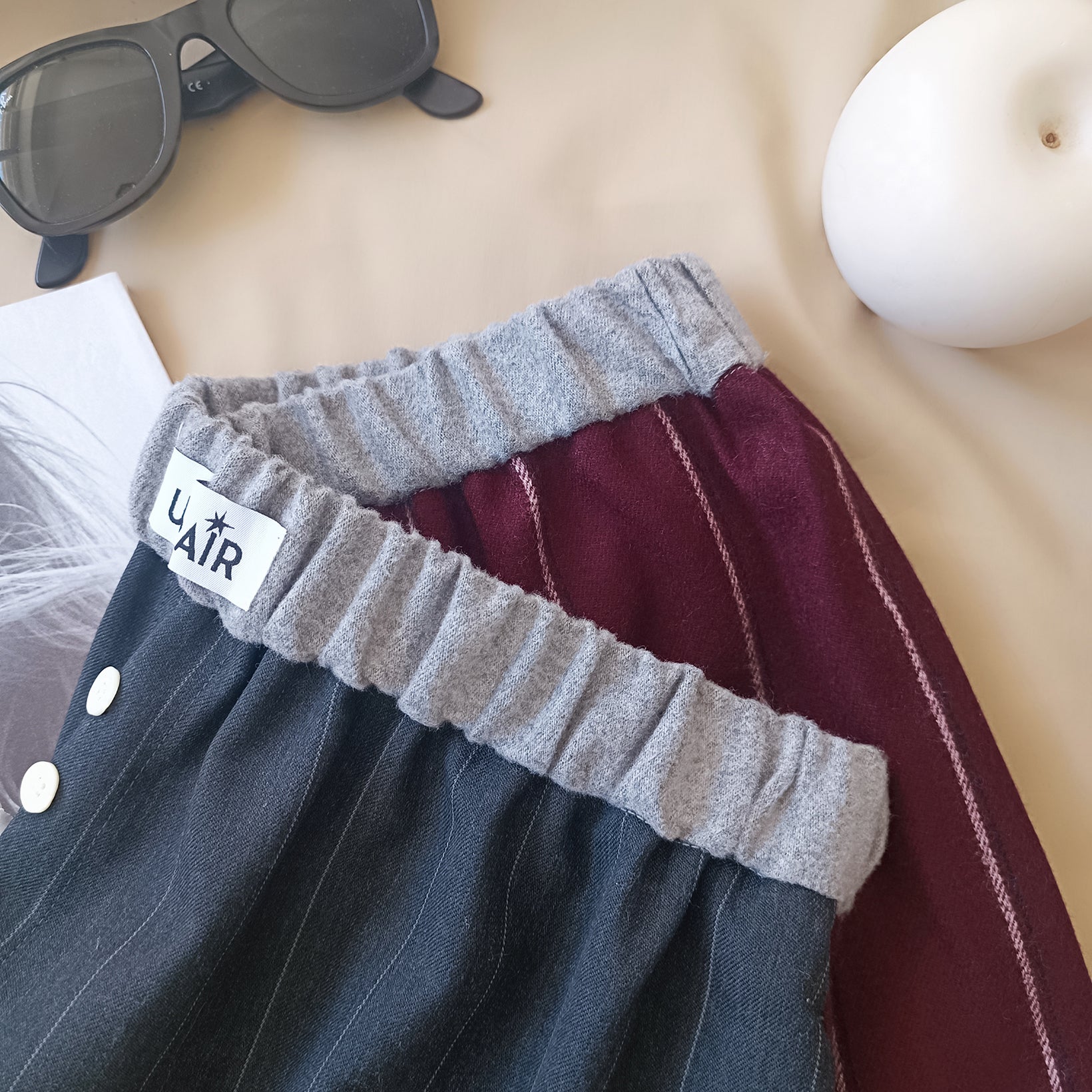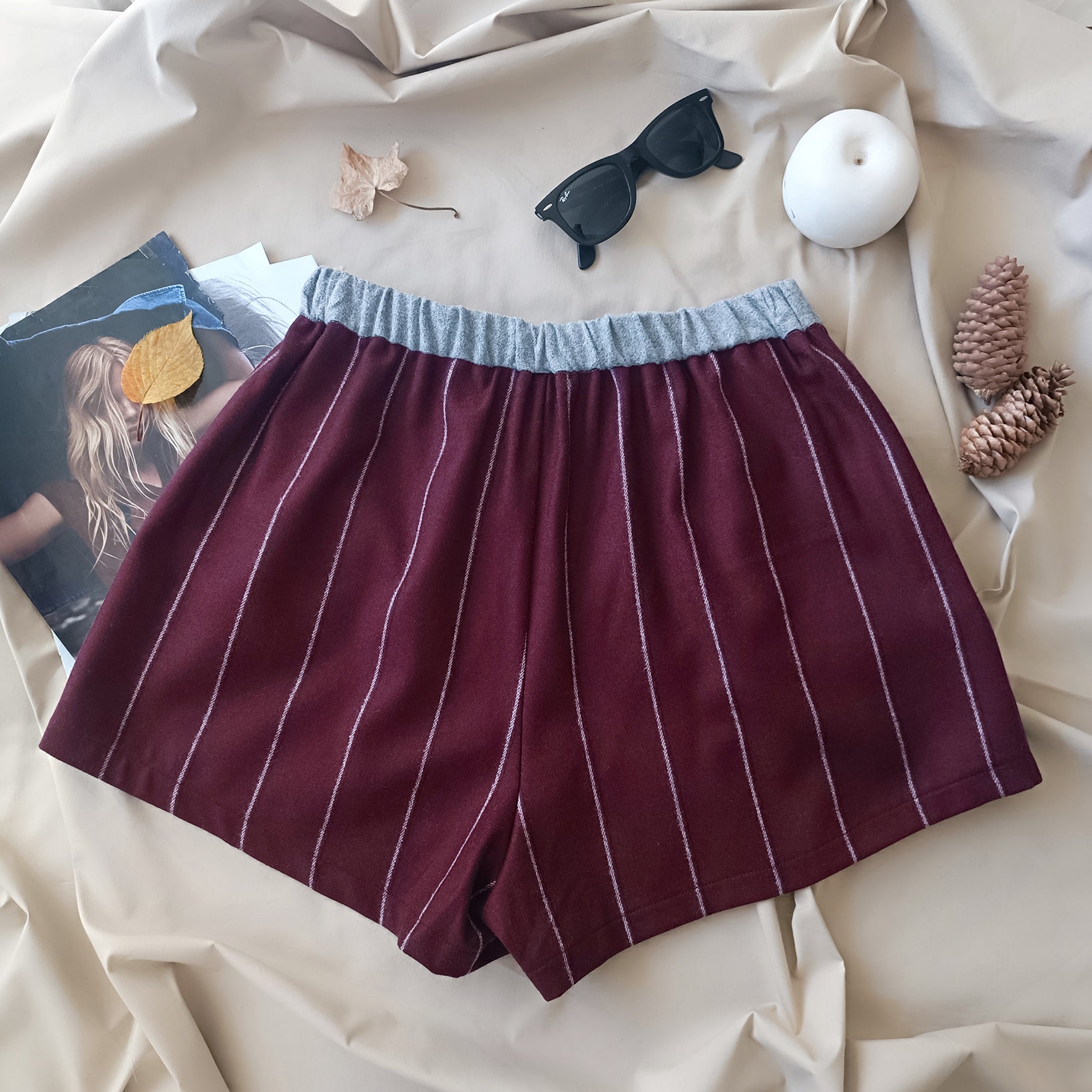 Gray pinstripe boxerina short with bordeaux pinstripe back
