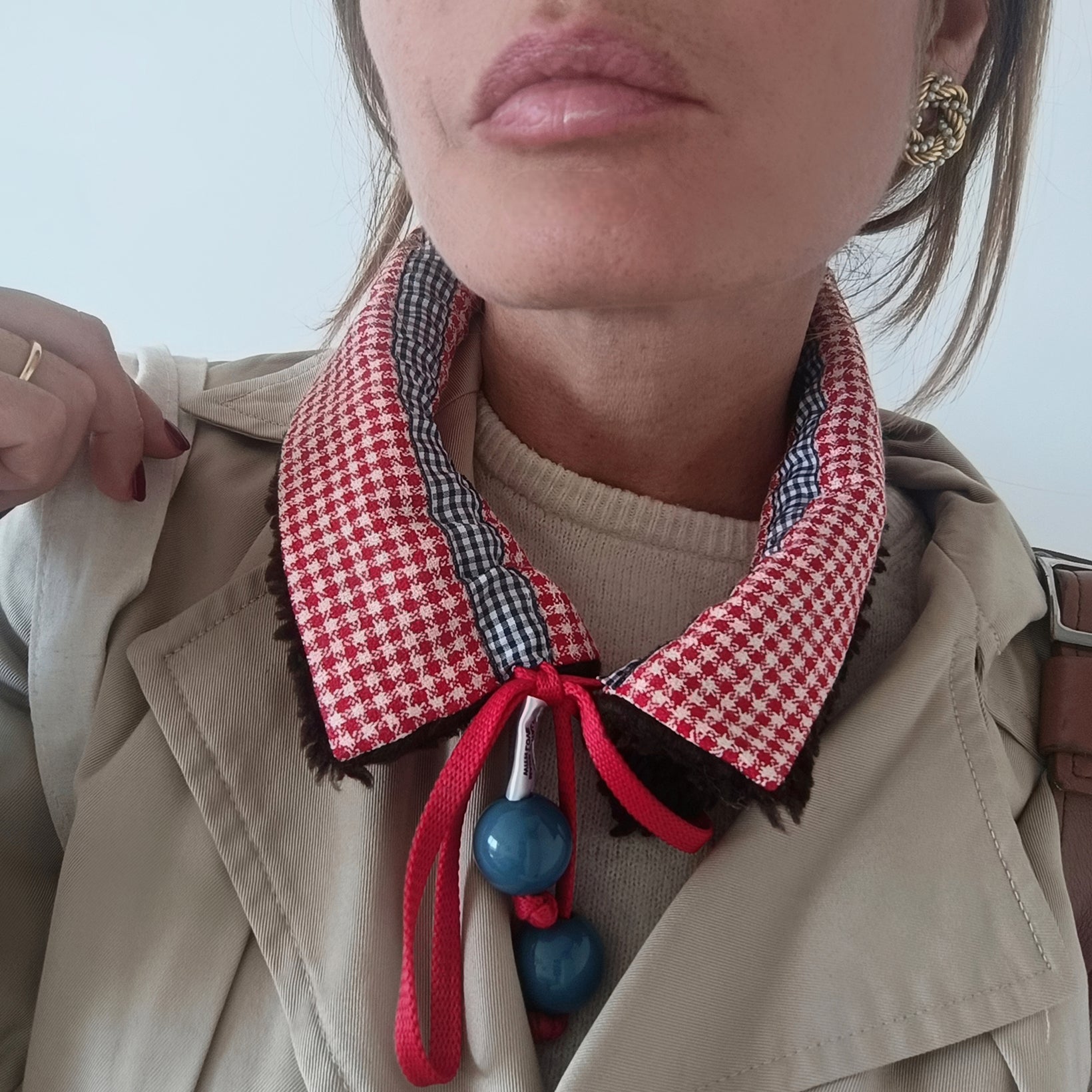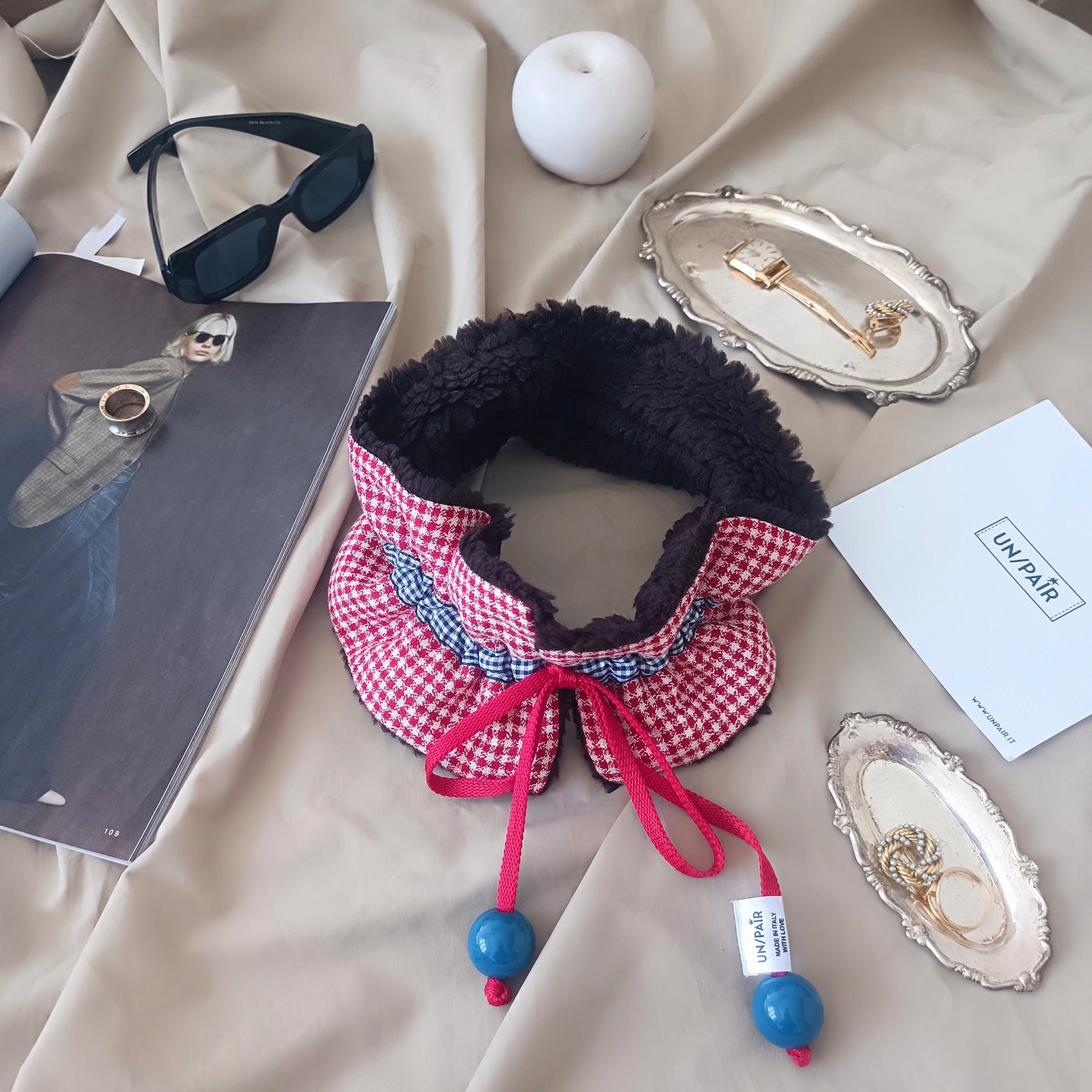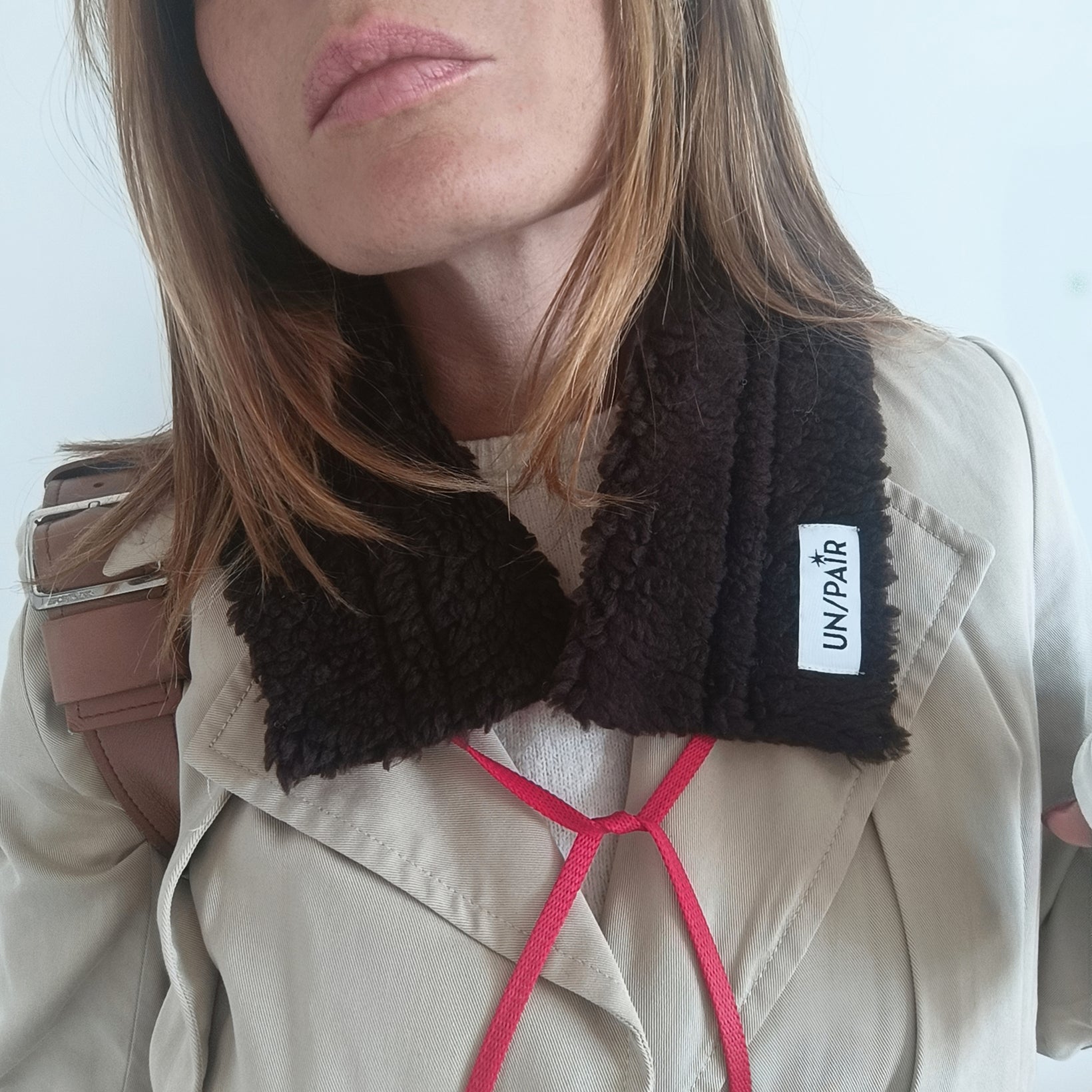 COLLAR UN/PAIR RED HOUNDSTOOTH DARK BROWN SHEEPSKIN COAT